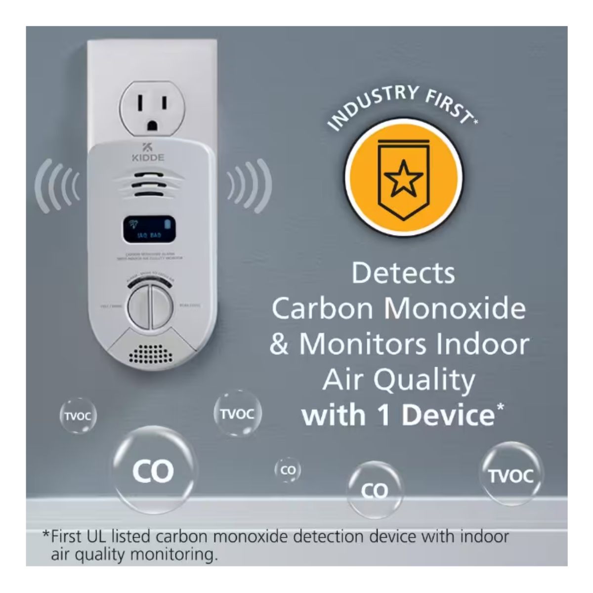 The Kidde carbon monoxide detector is designed to be easily plugged into a standard 120V AC power outlet in the US. It also comes with a lithium battery backup, ensuring uninterrupted protection in the event of a power outage. With a lifespan of 10 years, this alarm eliminates the need for battery replacements. Additionally, its digital display offers real-time updates on your home's air quality, including abnormal temperature levels, excessive humidity that may cause mold growth, and Total Volatile Organic Compounds (TVOC) presence.