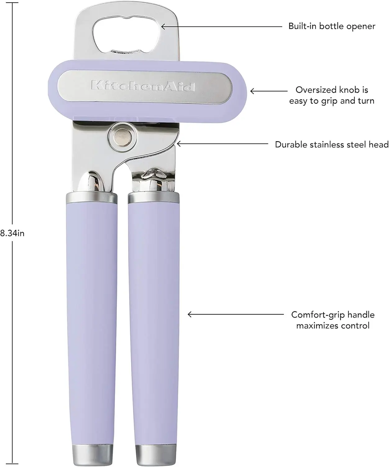 Effortlessly open any can or bottle with the KitchenAid Classic Can Opener. Its durable, razor-sharp stainless steel cutting wheel slices through cans with ease, while the large knob ensures a secure grip for smooth turning. The oversized ergonomic handles provide comfort and control for safe, simple use. This 2-in-1 tool also includes an integrated bottle opener for easy cap removal. For care, hand wash with warm water and mild detergent; rinse and dry immediately. Comes with a one-year hassle-free replacement and a lifetime limited warranty.