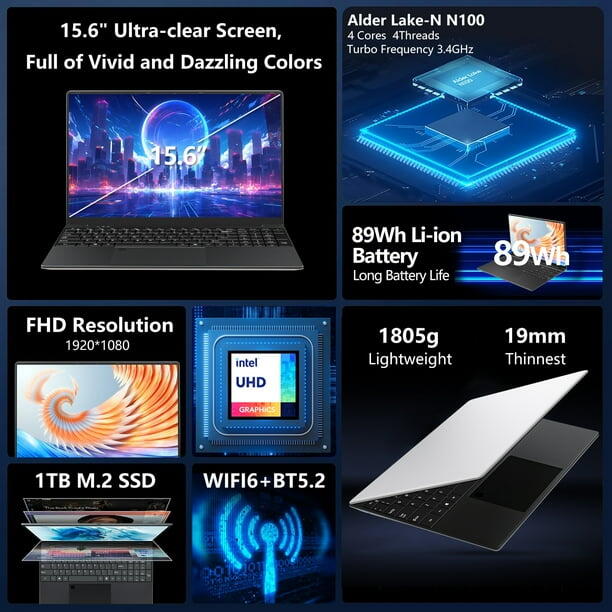 This high-performance laptop is powered by the Intel Celeron N100 processor, designed to handle everything from work tasks to entertainment with ease. Featuring a large 15.6-inch FHD IPS display, this laptop offers stunning visuals with a sleek, ultra-portable design. The 89Wh lithium-ion polymer battery delivers up to 20 hours of standby time, ensuring you stay powered throughout your day. With a reverse charging function, you can even use your laptop to charge your mobile phone on the go. Whether you’re multitasking, traveling, or working from anywhere, this laptop is designed to keep up with your needs.