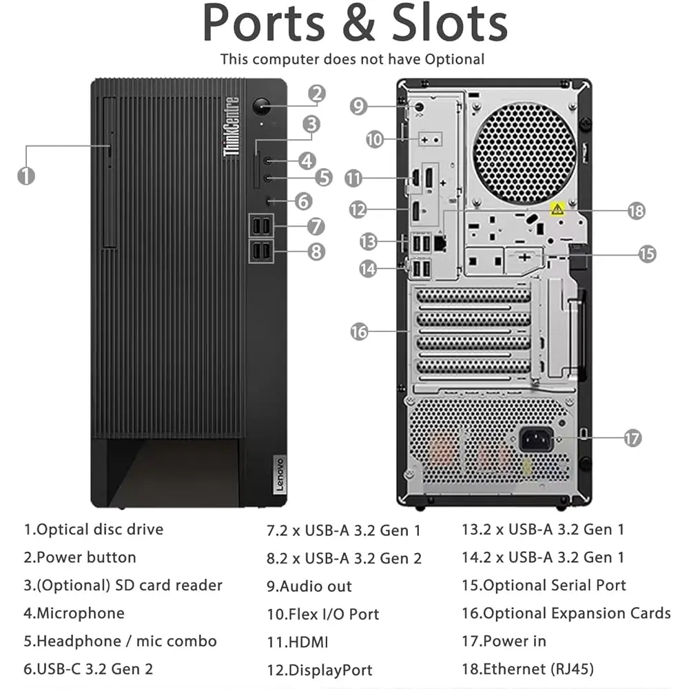 The Lenovo ThinkCentre M90t is a powerful and versatile desktop PC designed to meet the demands of modern professionals. This sleek and stylish desktop offers a balance of performance, security, and style, making it the perfect choice for businesses and individuals alike.