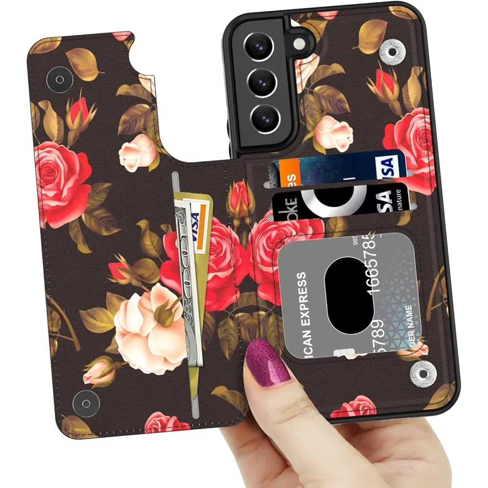 LETO Galaxy S22 Case,Luxury Flip Folio Leather Wallet Case Cover 6.1" Blooming Florals