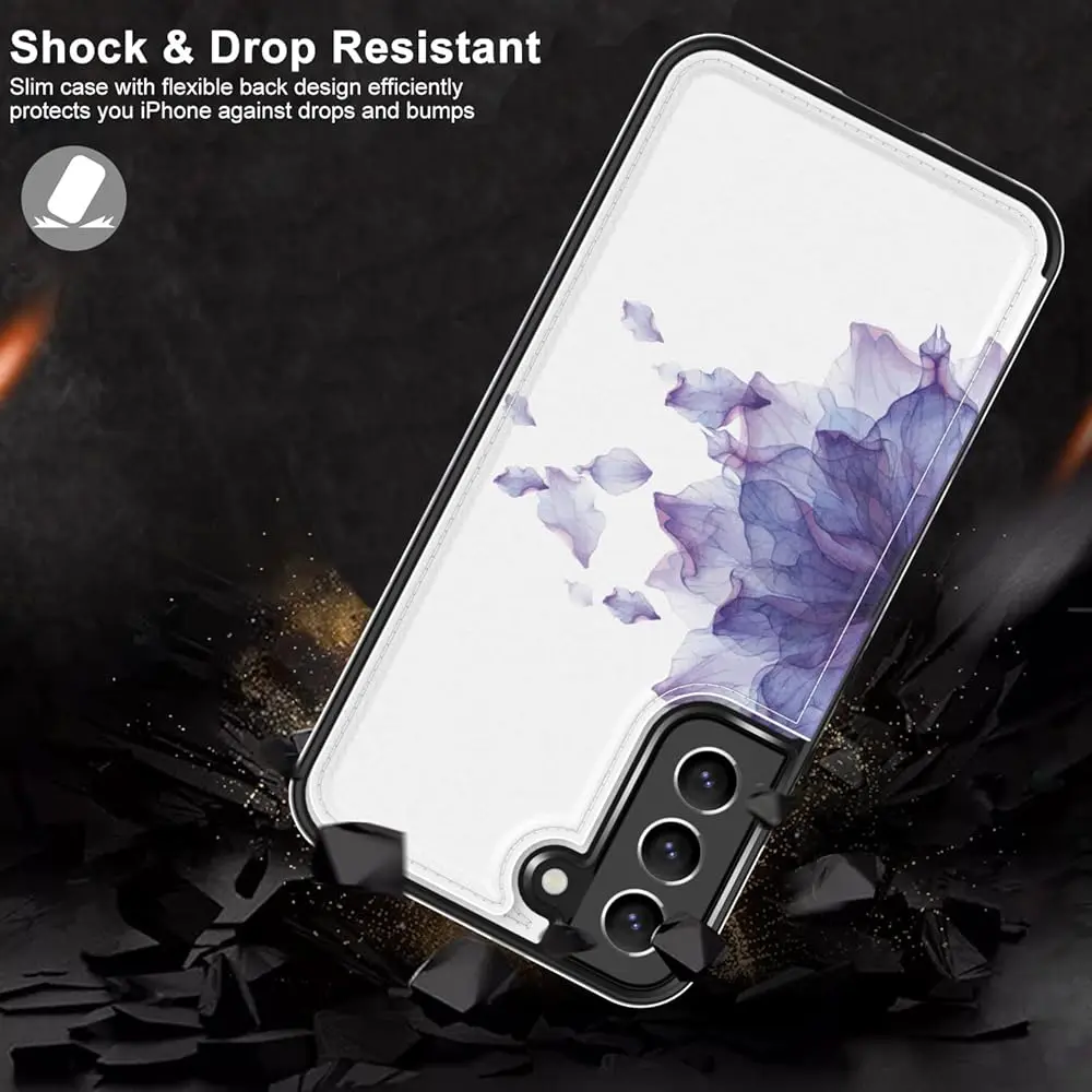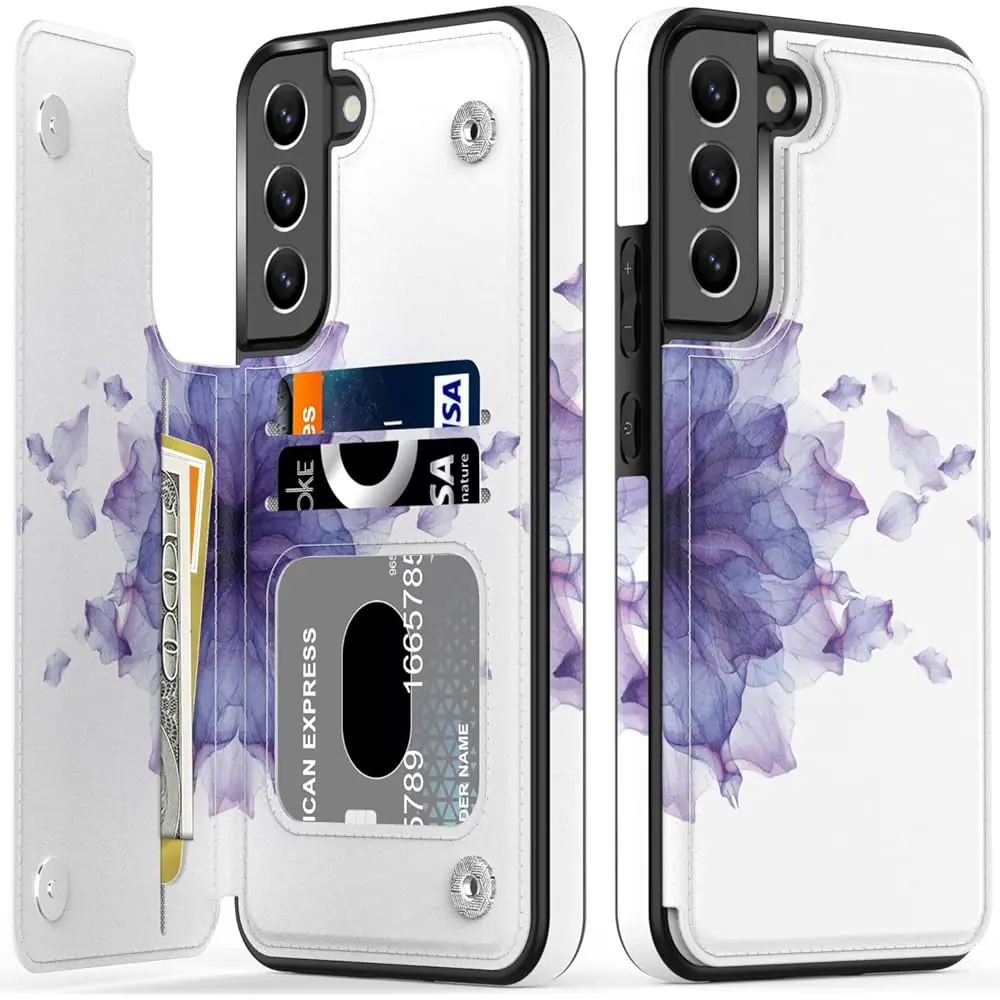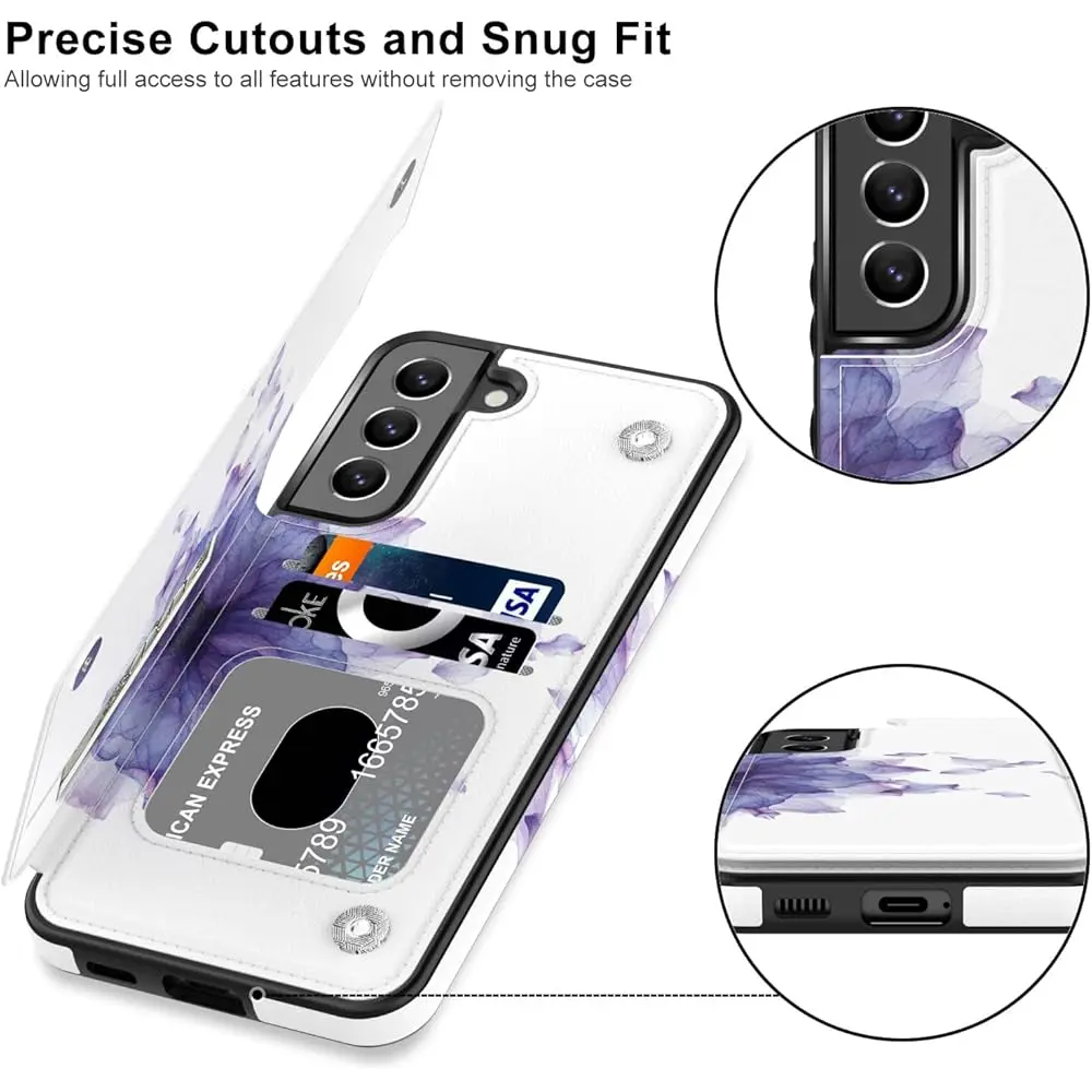 LETO Galaxy S22 Case,Luxury Flip Folio Leather Wallet Case Cover 6.1" Blooming Purple Flower