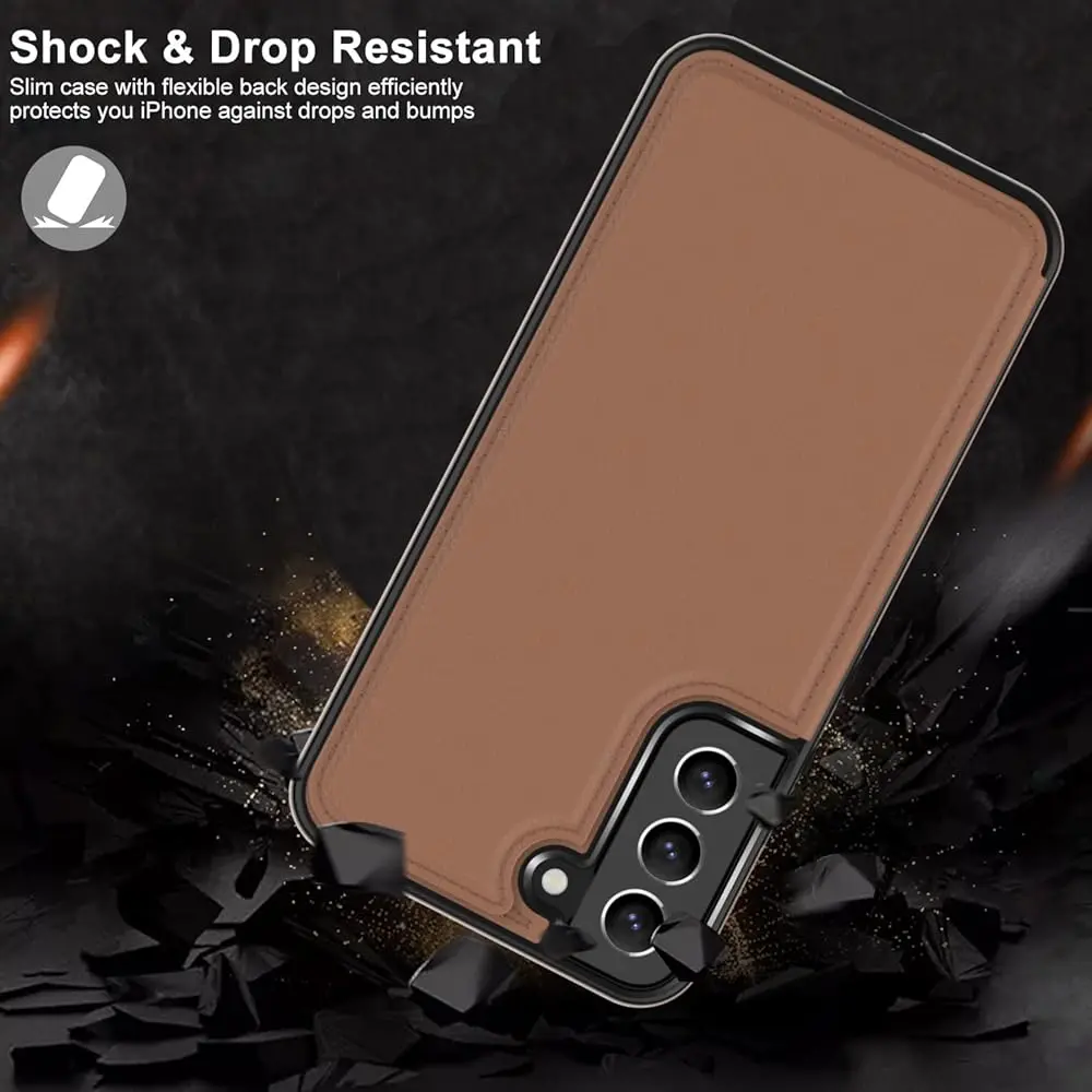 LETO Galaxy S22 Case,Luxury Flip Folio Leather Wallet Case Cover 6.1" Brown