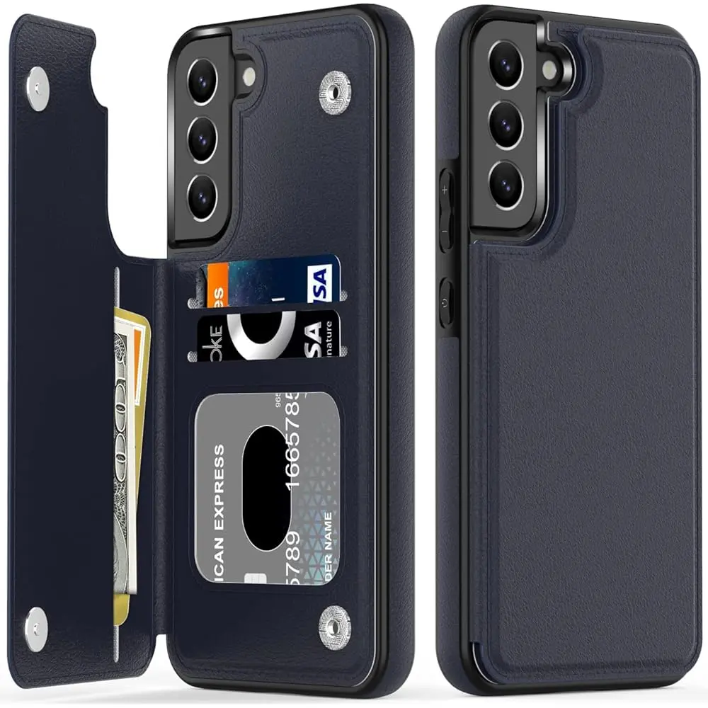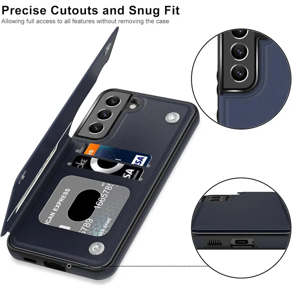 LETO Galaxy S22 Case,Luxury Flip Folio Leather Wallet Case Cover 6.1" Navy Blue