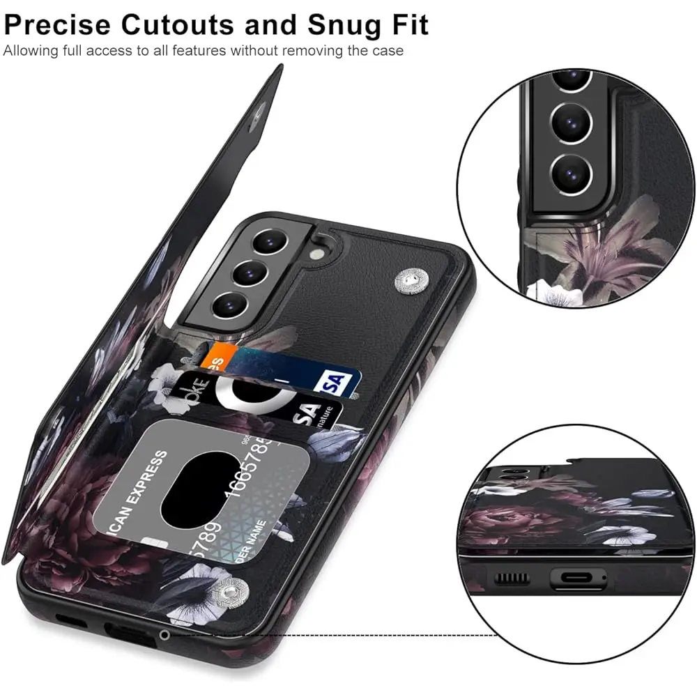 LETO Galaxy S22 Case,Luxury Flip Folio Leather Wallet Case Cover 6.1" Wine RED Flowers