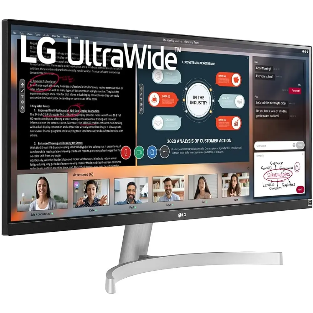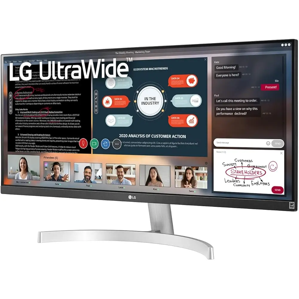 Experience seamless multitasking and immersive gaming with the LG 29WN600-W. The expansive 29" UltraWide screen features a 21:9 aspect ratio (2560x1080 resolution), offering a panoramic view ideal for content creation, gaming, and productivity. The IPS display ensures vivid and accurate colors, even from wide angles, while HDR10 enhances contrast and detail for an impressive visual experience. The monitor is equipped with sRGB 99% color gamut, making it perfect for photographers, designers, and content creators.
