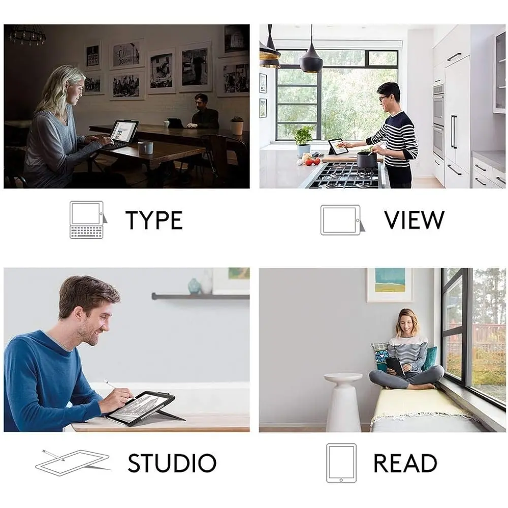 • Four versatile use modes: Offers typing, viewing, studio, and book modes, allowing you to adjust the case to your needs for different activities.