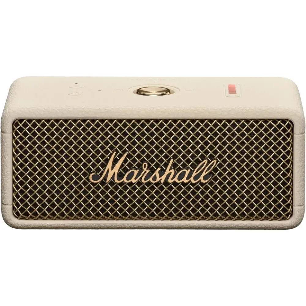 The Marshall Emberton III Portable Bluetooth Speaker offers rich sound quality with deep bass and clear audio, all packed into a compact, portable design perfect for travel. Equipped with Bluetooth 5.0, it ensures stable, high-quality wireless streaming. Built for durability, its water-resistant construction makes it ideal for outdoor use, while the stylish cream finish adds a classic Marshall touch