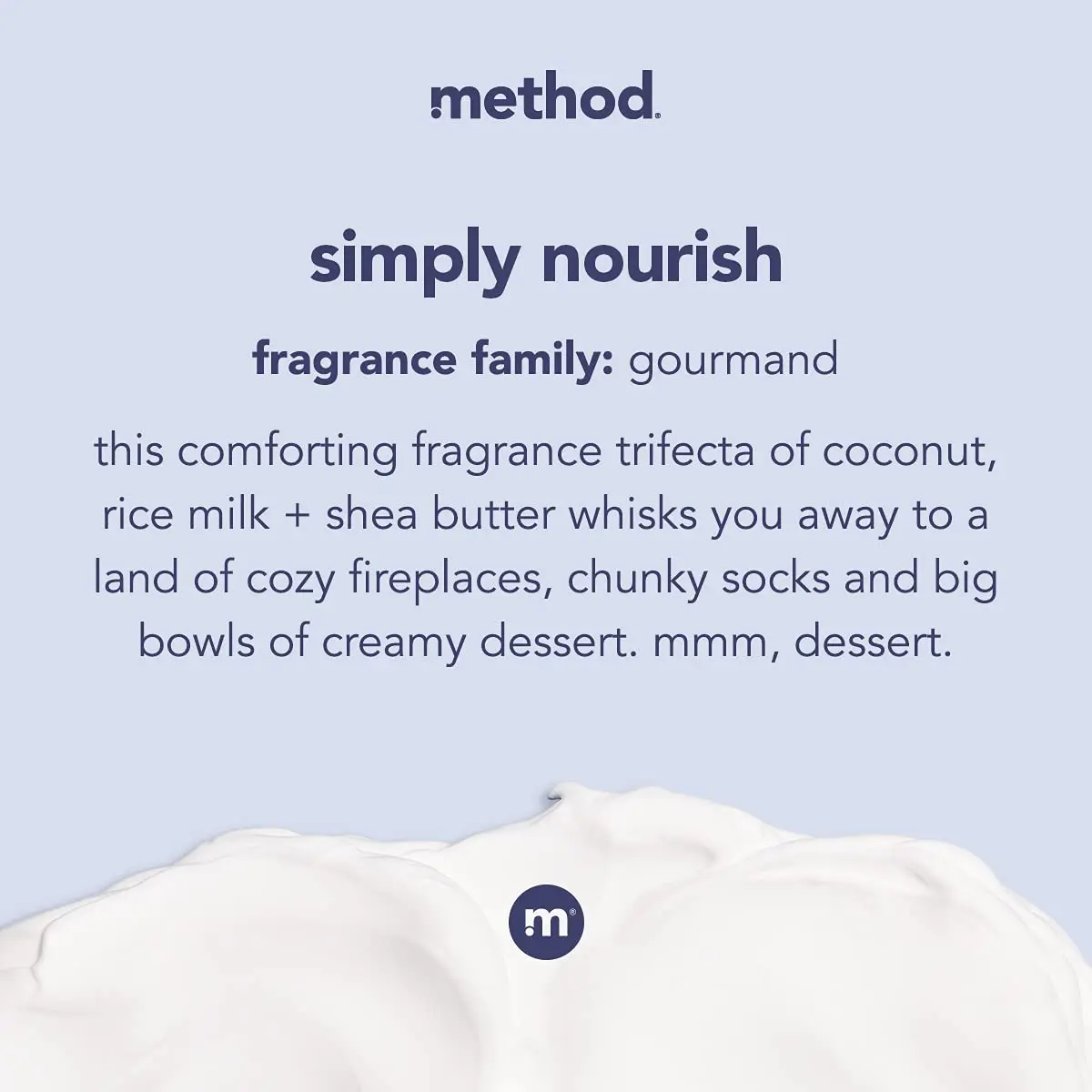 Contains (1) 28 oz bottle of gel body soap.Infused with coconut, rice milk, and shea butter.Biodegradable formula with plant-based cleansers.Free from parabens, phthalates, and harmful additives.Leaves skin moisturized and pleasantly scented.Bottle (excluding pump) made from 80% recycled plastic (PCR).