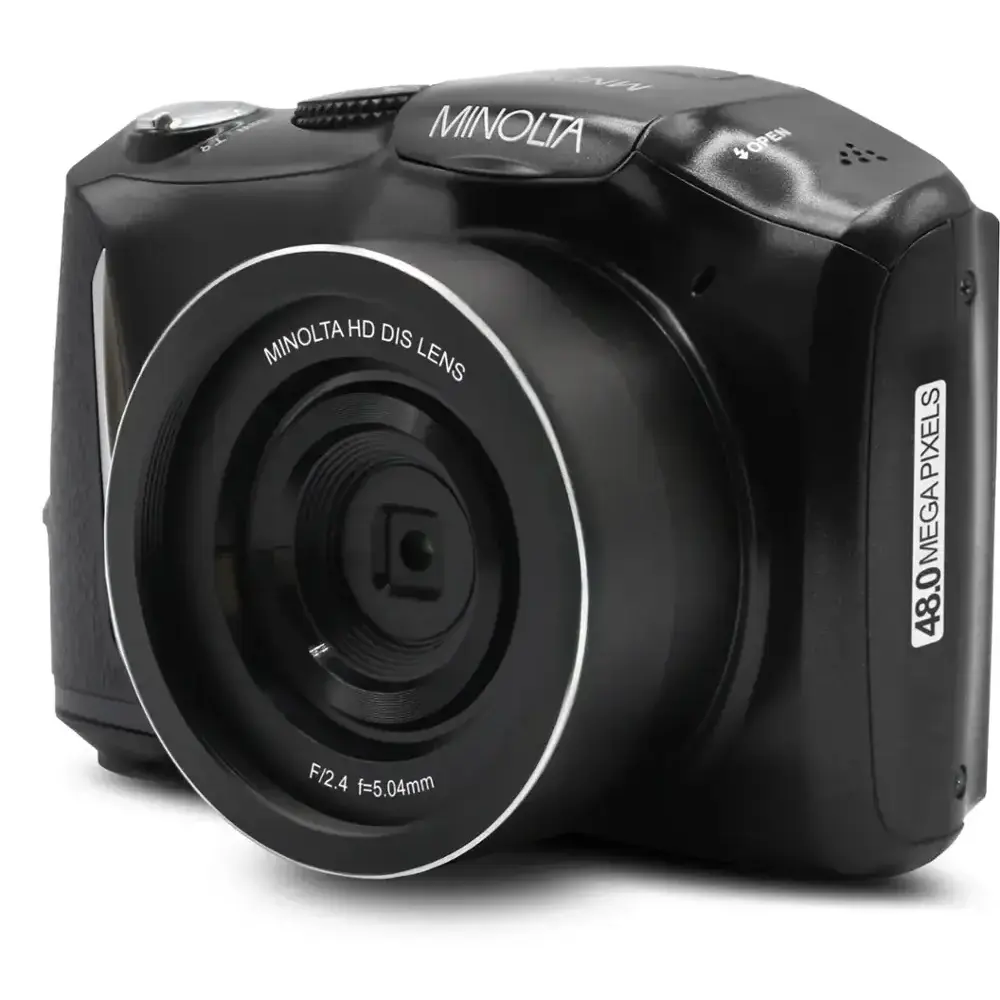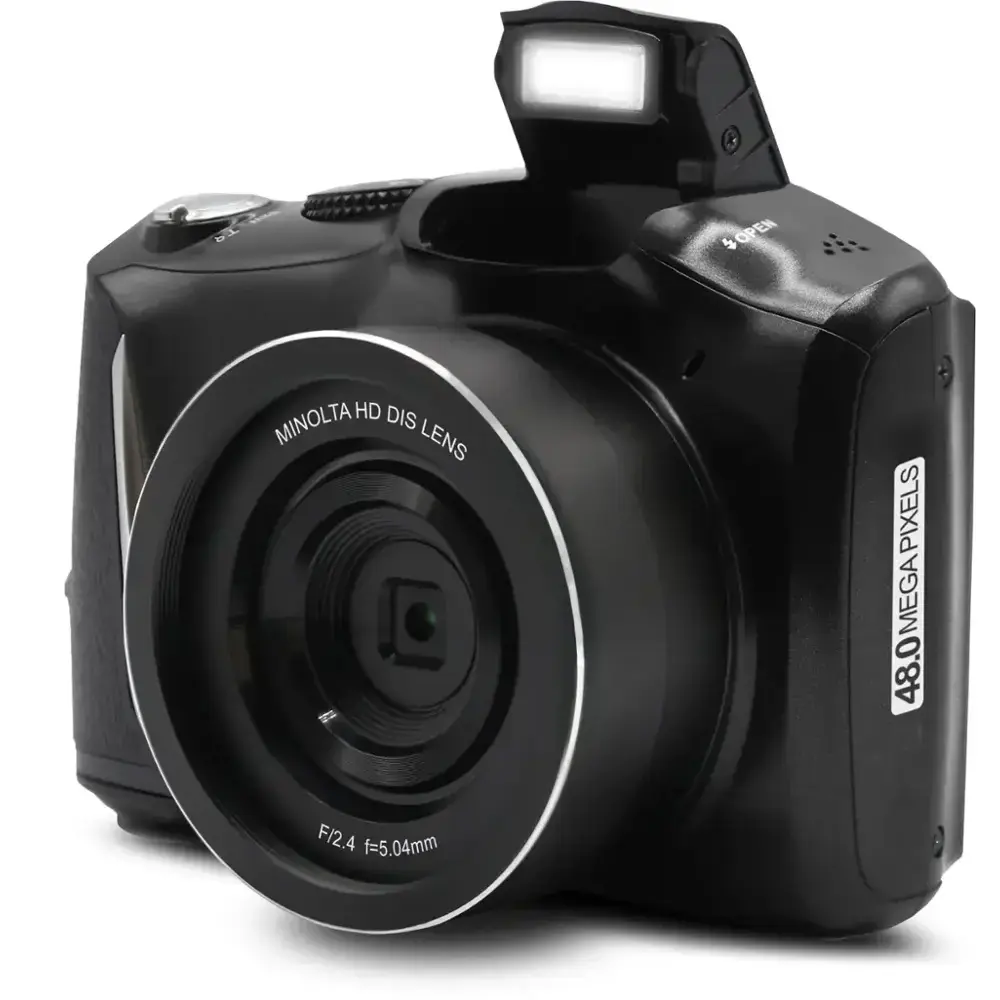 The Minolta MND50 is a compact and user-friendly camera designed for high-resolution photography and ultra-clear 4K UHD video. With a crystal-clear lens and 16x digital zoom, it adapts to various shooting scenarios, capturing stunning 48MP stills and smooth 4K/60p video. The 3.0-inch IPS LCD screen makes composition and playback effortless, while the built-in pop-up flash enhances low-light shots. Expandability features, including a 3.5mm microphone input and 52mm threaded lens compatibility, allow you to elevate your content creation.