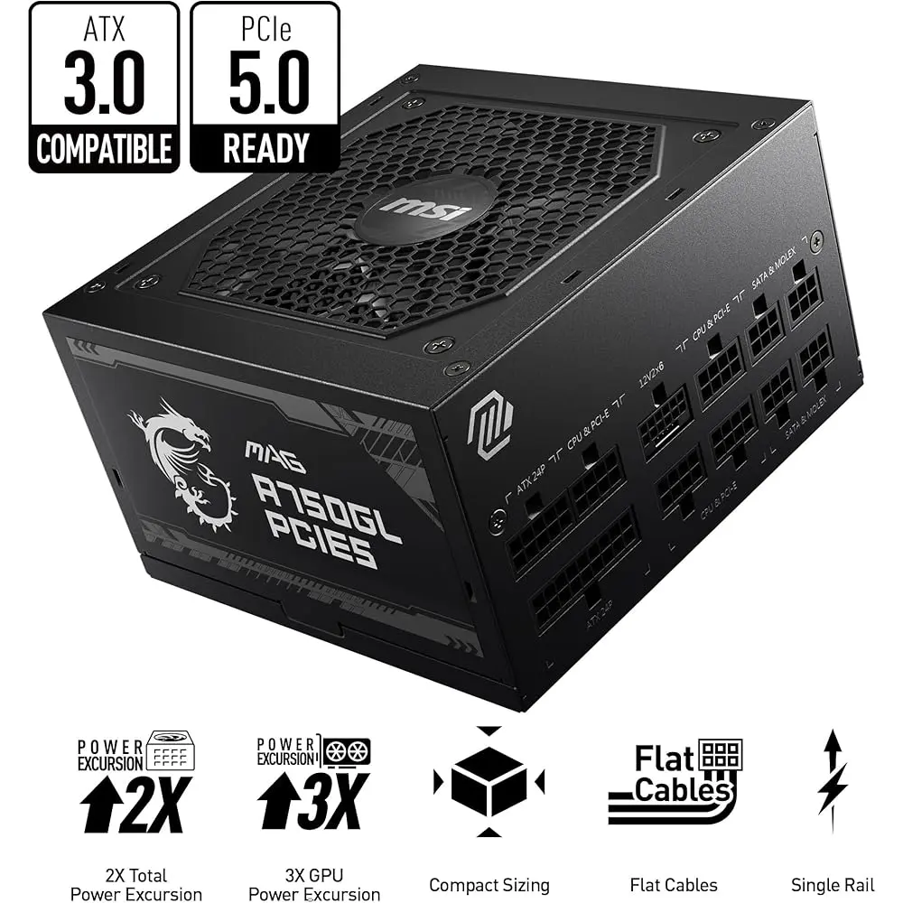 The MSI MAG A750GL is a high-performance power supply unit (PSU) designed to deliver reliable and efficient power to your gaming PC. It's perfect for powering demanding gaming systems and content creation workstations.