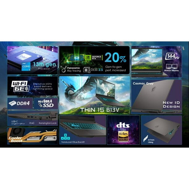 Weighing just 4.1 lbs and finished in Cosmos Gray, the MSI Thin 15 is as stylish as it is mobile — perfect for gaming, content creation, or productivity on the go. - Gaming-Ready Keyboard:
