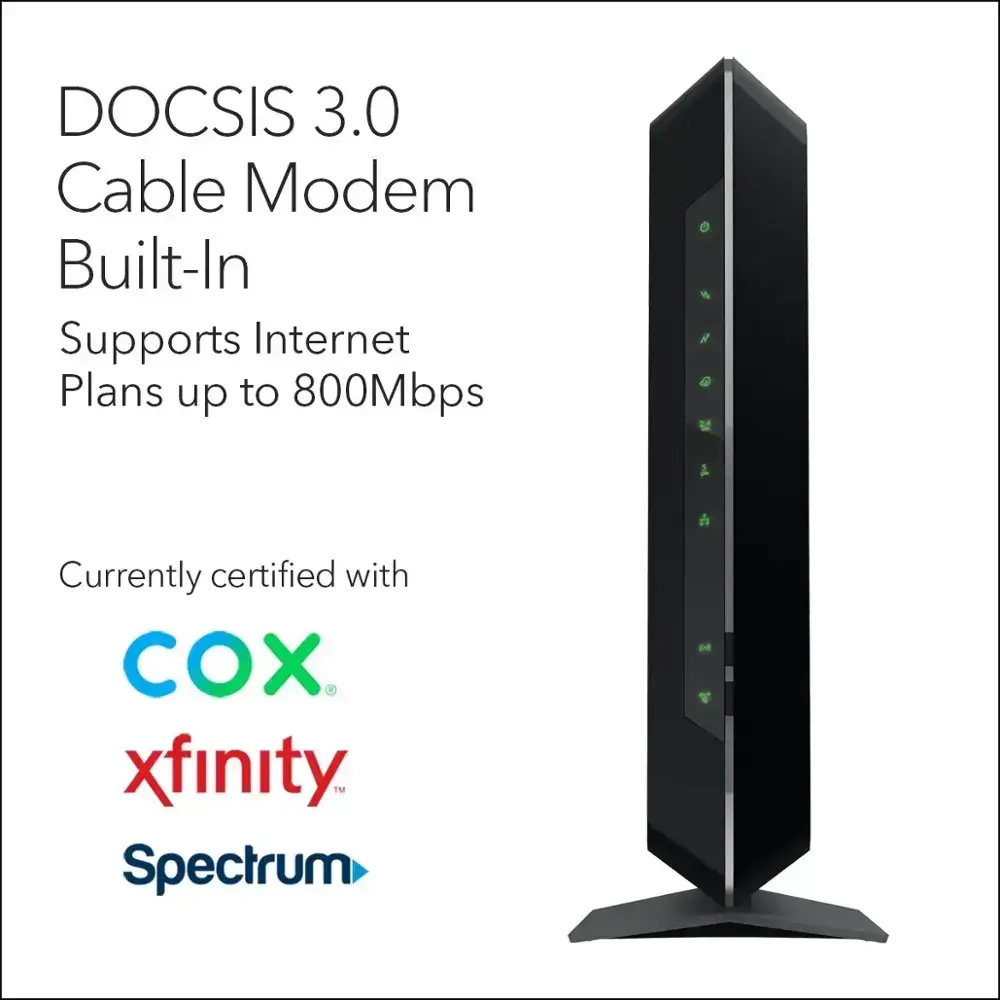 - All-in-One WiFi Solution – Optimizes WiFi coverage and delivers fast speeds, even during peak hours, with your own NETGEAR Cable Modem Router.