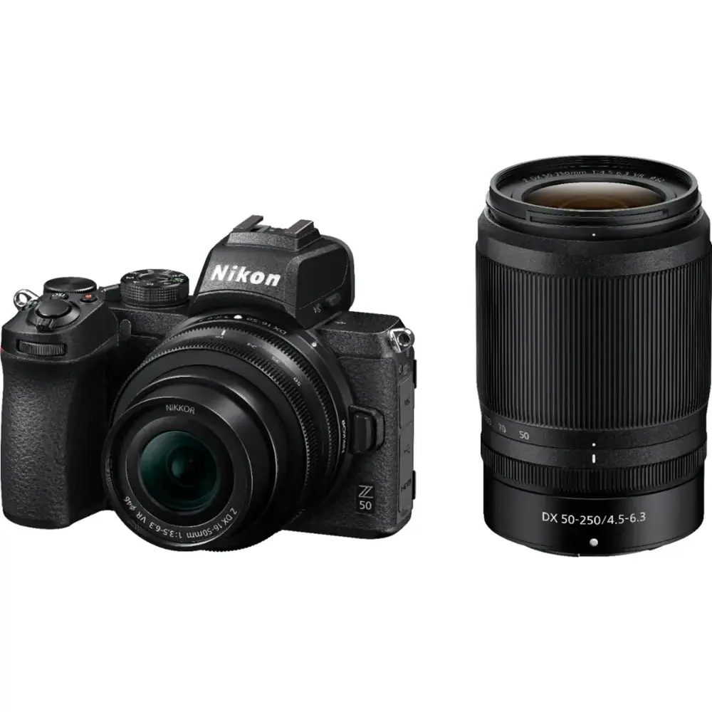 Capture stunning images and videos with the compact and lightweight Nikon Z50 mirrorless digital camera kit. Equipped with versatile lenses and advanced features, this kit is designed for photographers who want high-quality results in any setting.