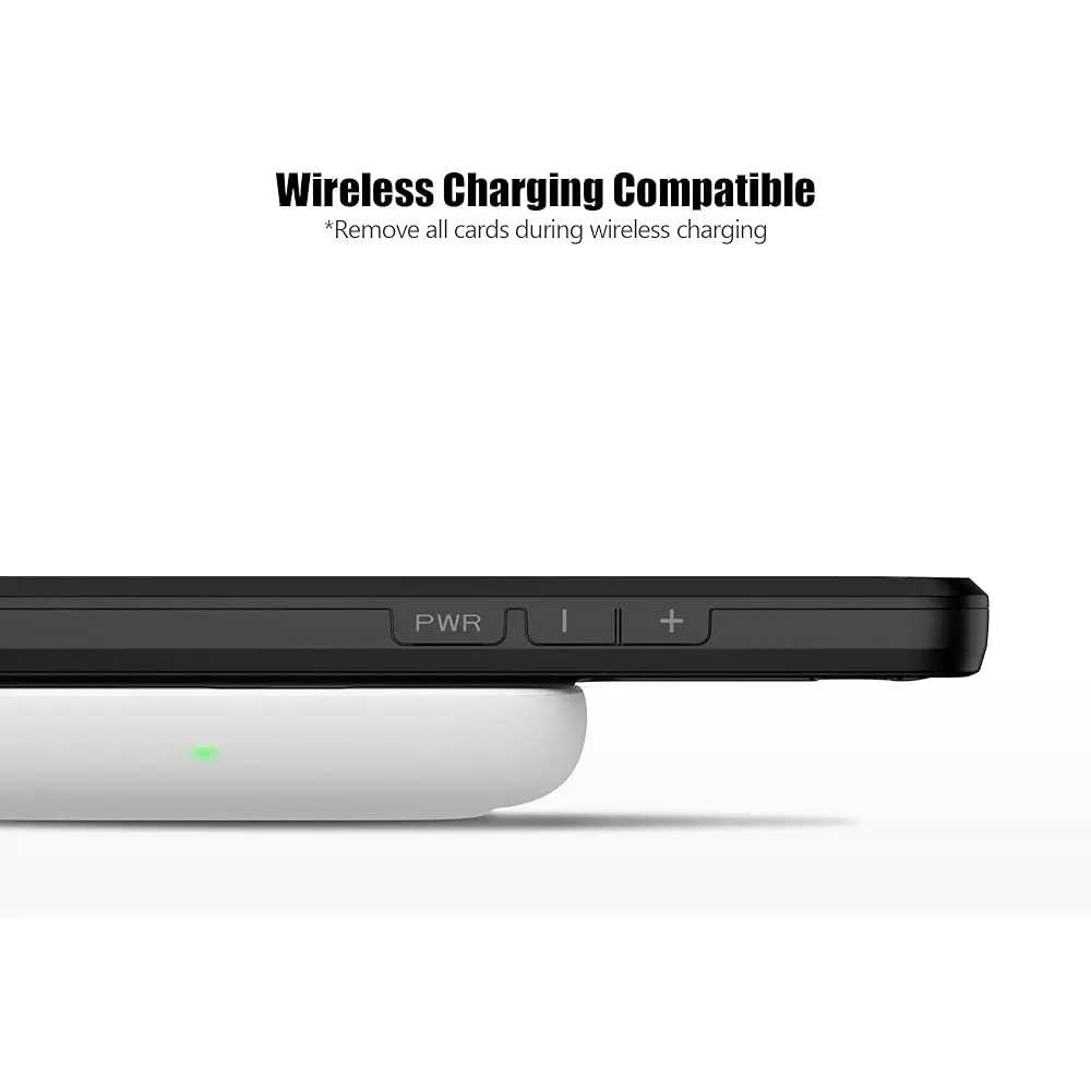 • Slim & Convenient: Sleek exterior slides easily into pockets and supports wireless charging without removing the case. Reminder: Remove cards from the slot before wireless charging.