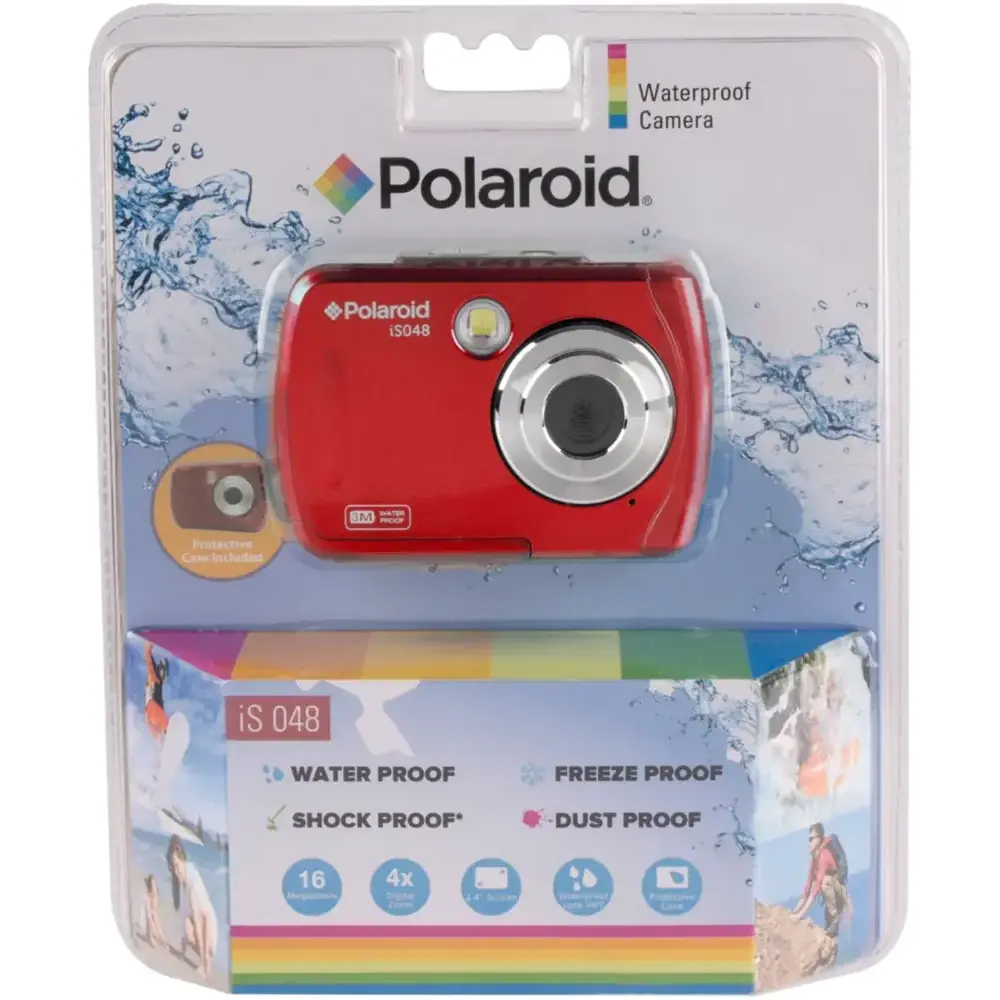 The Polaroid iS048 digital camera is the ultimate companion for adventures. With 16 MP, it lets you capture stunning images and preview them on the 2.4" screen. Compact and lightweight, it fits easily into your pocket, so you're always ready to capture the perfect shot—even underwater! Waterproof up to 10 ft, the iS048 lets you dive into pools or lakes without worry. Store your photos on a micro SD card (not included) for easy transfer to your devices and share your memories with family and friends.