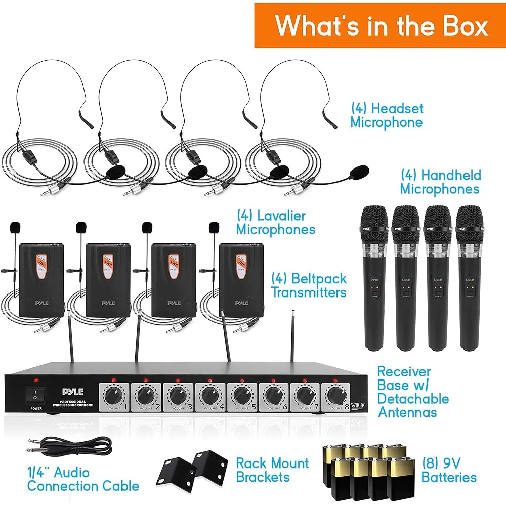 Elevate your performances with the Pyle 8 Channel Wireless Microphone System. This versatile and powerful system is perfect for a wide range of applications, including karaoke, live performances, conferences, and more.
