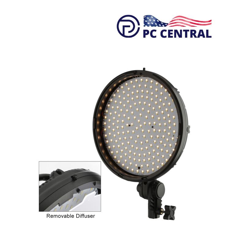 This Bi-Color Round LED Light Panel from Raya measures 9" in diameter and sports impressive brightness and color accuracy. With the included diffuser, the light delivers a wide, single-shadow, wraparound beam as well as natural-looking catchlights in your subject's eyes. Color temperature can be adjusted from 3200 to 5600K and the fixture has high CRI/TLCI ratings of 96.8 and 99 to deliver superior color reproduction with subtle and flattering skin tones.
