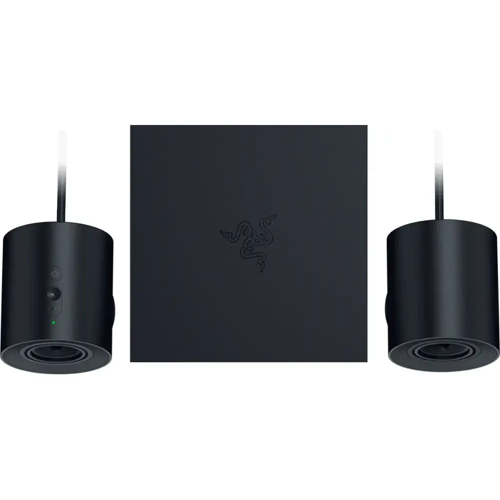 Elevate your gaming experience with the Razer Nommo V2, a full-range speaker system with a subwoofer engineered for high-fidelity, immersive sound and powerful bass. Featuring THX Spatial Audio and Razer Chroma RGB, get ready for an all-encompassing experience that engages both sight and sound.