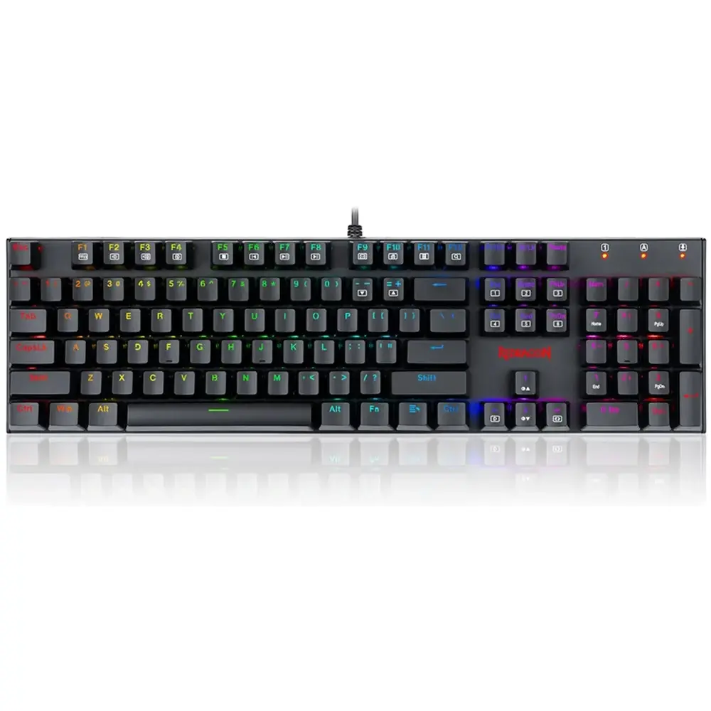 The Redragon K565 Mechanical Gaming Keyboard features responsive Red switches, RGB backlighting with over 16.8 million color options, and 20 customizable effects. Its fully programmable keys and macros enhance gaming and productivity. Built with a durable aluminum frame, it’s designed for long-lasting use and stability. The keyboard includes anti-ghosting technology for simultaneous key presses and is compatible with both Windows and Mac systems. Ideal for gamers and professionals, it delivers performance, customization, and reliability.