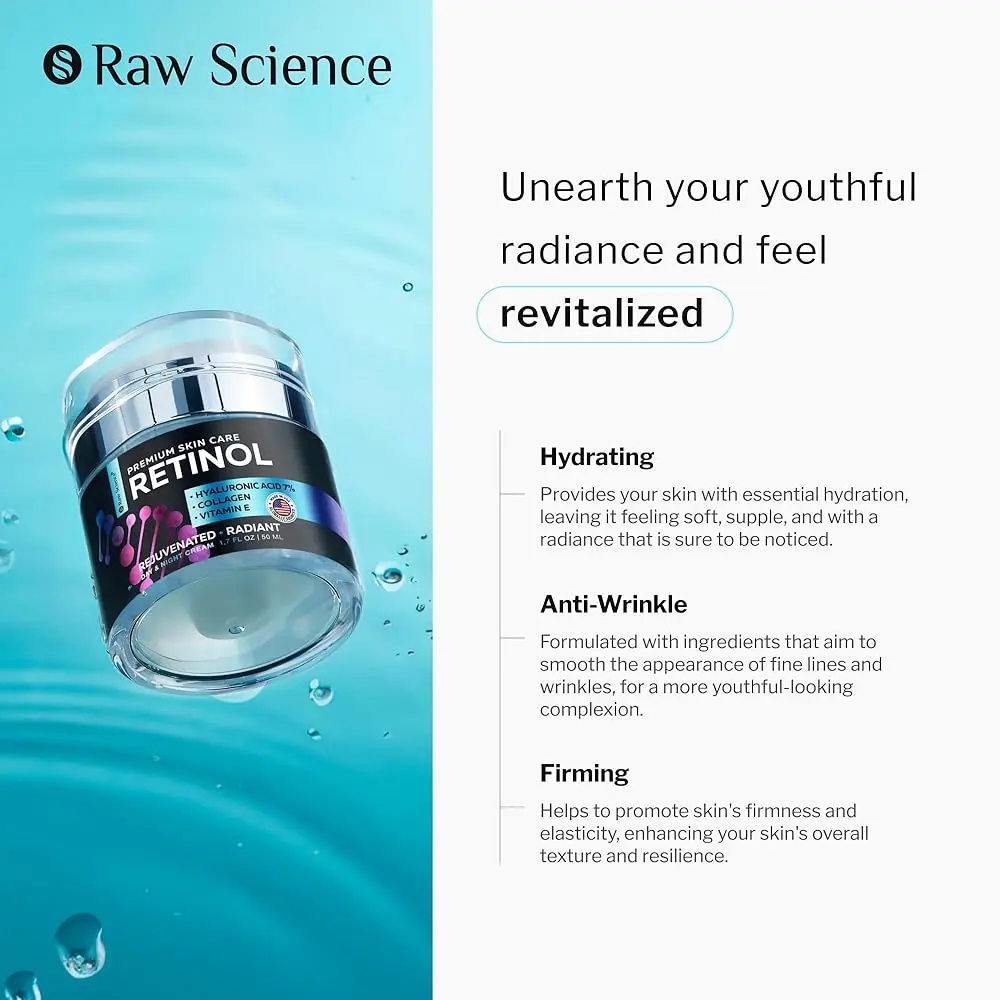 This Retinol Face Cream is a powerful anti-aging solution designed for both women and men, providing essential moisture and promoting youthful, firm skin. Infused with a blend of Retinol, Collagen, Vitamin E, and Hyaluronic Acid, this cream works to reduce the appearance of fine lines, wrinkles, and other signs of aging. Its rich, non-greasy formula delivers long-lasting hydration while enhancing the skin's elasticity and firmness.