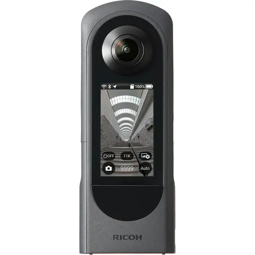 The Ricoh THETA X 360 Camera offers stunning 5.7K 360 video and 11MP photos, delivering high-quality imaging for both professionals and enthusiasts. With its built-in four microphones, it captures immersive audio to complement the visuals. The camera features a convenient touchscreen display for easy control and live previews. Boasting 64GB of internal storage, the Ricoh THETA X 360 Camera allows for extensive footage recording and instant sharing through Wi-Fi and Bluetooth connectivity. It also supports live streaming in 360, making it an ideal choice for content creators on the go