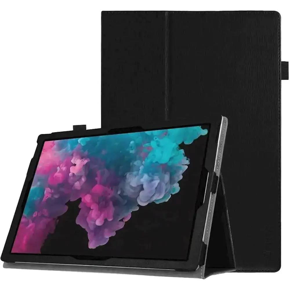 Keep your Microsoft Surface Pro 6, Pro 7, and Pro 7+ safe with the black SaharaCase Folio case. Crafted from durable TPU, leather, and plastic, this lightweight case preserves your device's original shape. It features raised bezels to protect the screen from front-facing drops and a built-in kickstand for easy, hands-free movie watching.