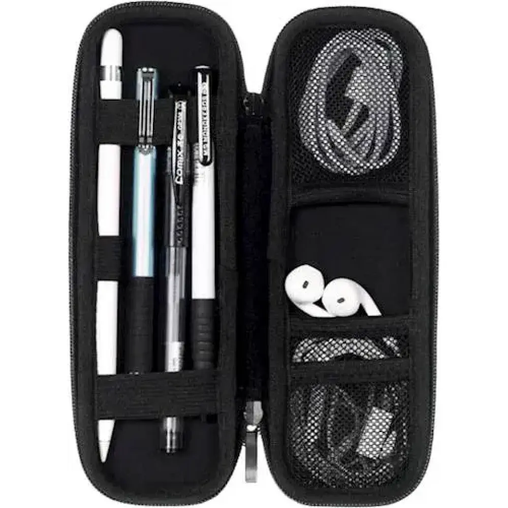 Keep your smart device accessories organized with the SaharaCase SaharaBasics holder case for Apple Pencil and Surface Pen. Made from premium PU leather, it features a soft microfiber interior that protects against scratches and dirt. A built-in mesh pocket and elastic strap offer space for pens and accessories like earphones and cables. The dual-zipper opening ensures quick and easy access to your items.