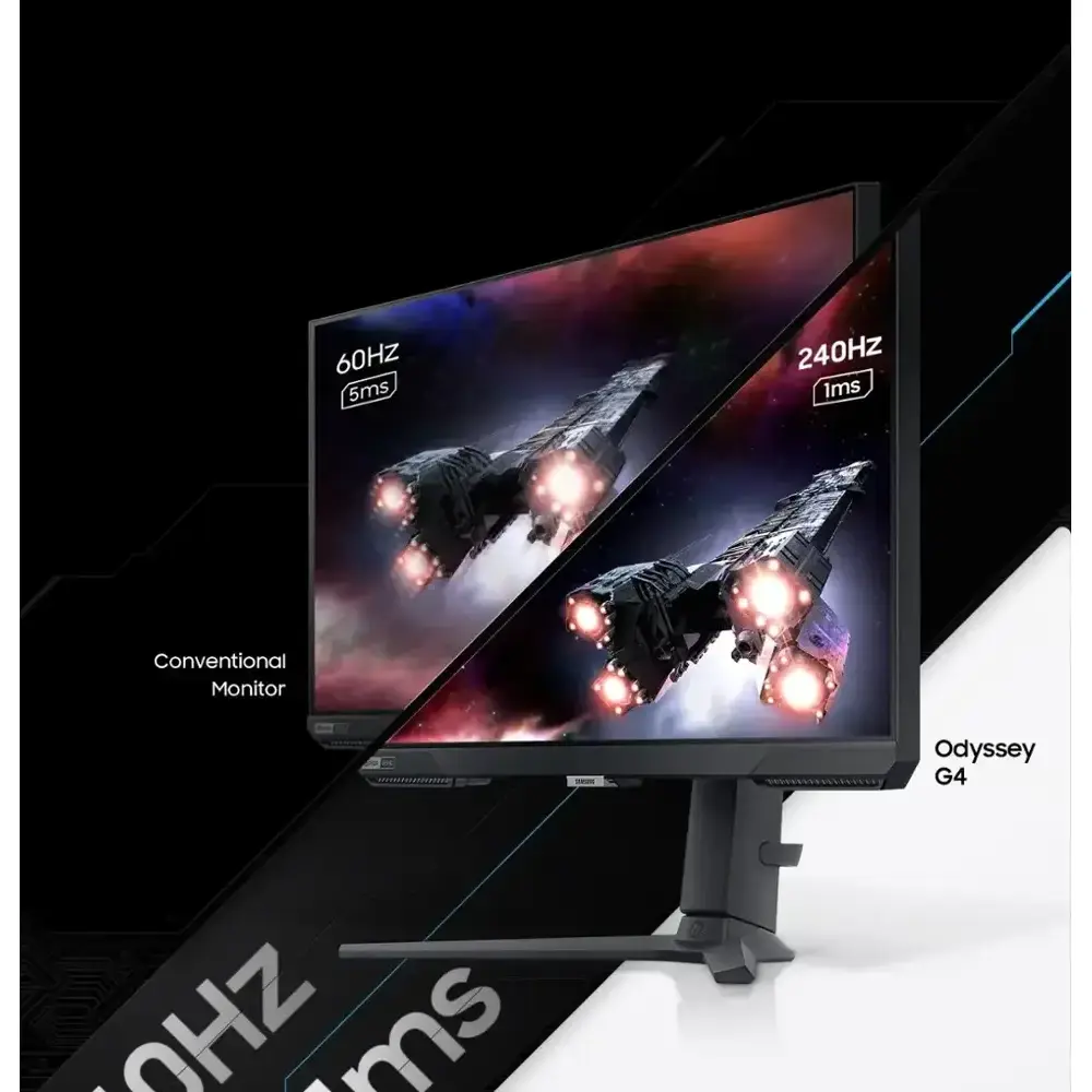 Gain the ultimate gaming advantage with the Samsung 27" Odyssey G4. Designed for serious gamers, this monitor features a blazing-fast 240Hz refresh rate, 1ms (GTG) response time, and full NVIDIA G-Sync & AMD FreeSync Premium support, ensuring smooth, stutter-free gameplay. With an IPS panel for stunning color accuracy and a 178º wide viewing angle, every frame comes to life in crisp detail.