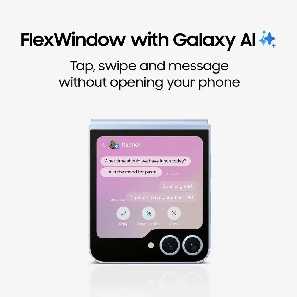 • 3.4" Super AMOLED Cover Screen – Quick access to notifications and widgets.