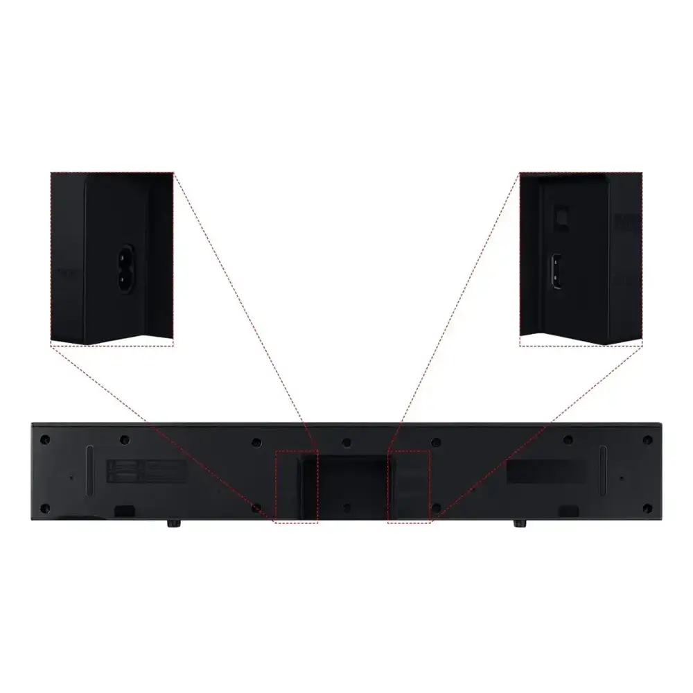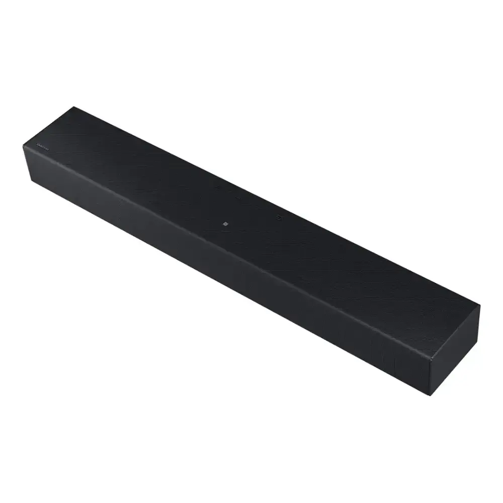 The Samsung HW-C400/ZA 2.0 Channel C-Series Soundbar in Black delivers clear, balanced audio with its 2.0 channel system, enhanced by a built-in woofer for richer bass without the need for a separate subwoofer. Its Bluetooth connectivity allows for effortless streaming from your devices, ensuring a seamless audio experience. With a compact, sleek design, it easily fits into any space while providing powerful sound. Enjoy a hassle-free setup with simple connections to your TV and devices for immediate use