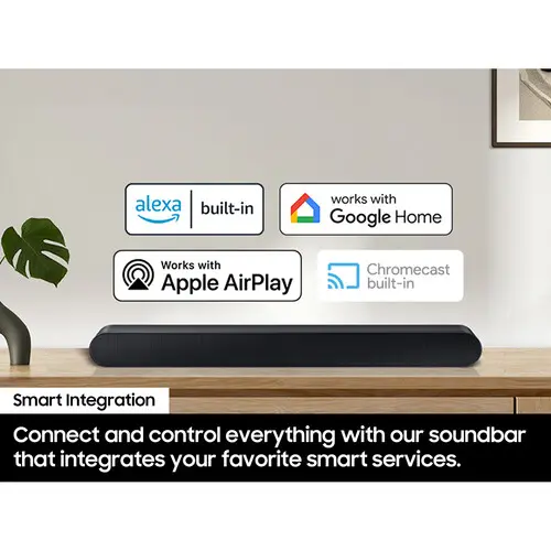 With Bluetooth and AirPlay 2, the HW-S60D supports seamless wireless connectivity, enabling you to stream music from your devices without the need for physical connections. It also features Chromecast built-in, Spotify Connect, and TIDAL Connect, giving you access to a wide range of music streaming options for your listening convenience.
