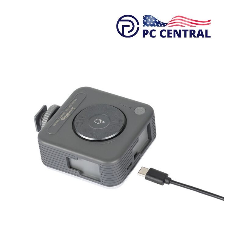The simorr P96 features a built-in 2200mAh battery and can be charged using the included USB Type-C to Type-A cable. On the back, the large stepless wheel allows you to change brightness and color temperature settings easily. On a full charge, the light has a battery life of approximately 1.75 hours at maximum brightness and up to 13.5 hours at minimum brightness.
