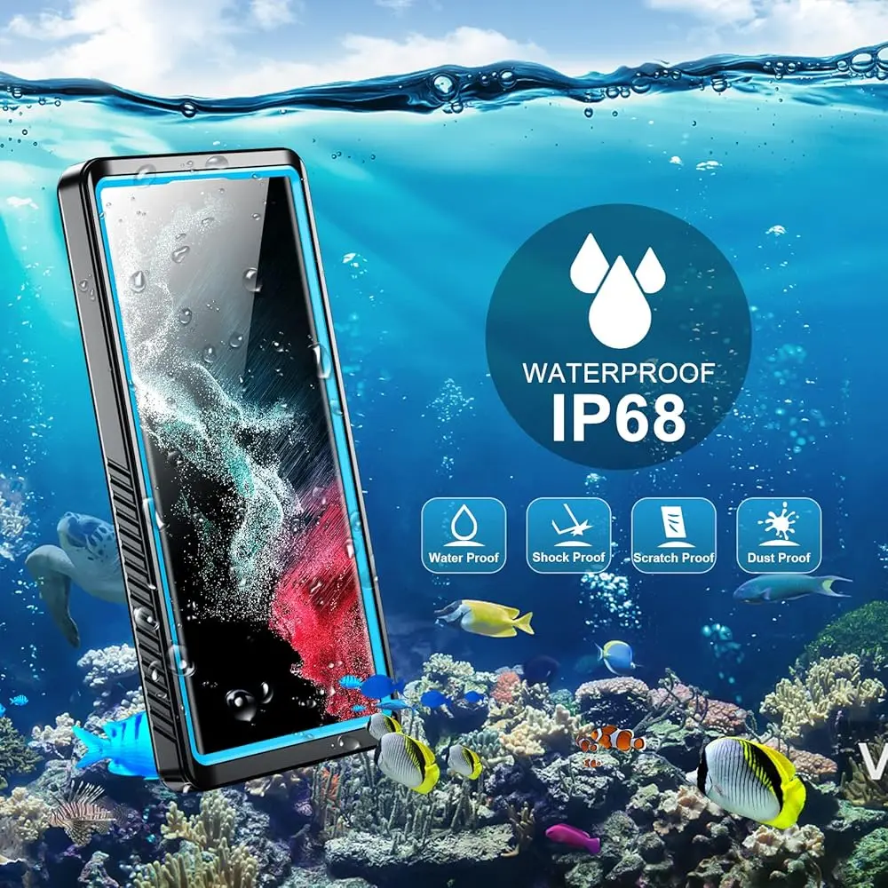 The SPIDERCASE Designed for Samsung Galaxy S22 Ultra offers robust protection with its heavy-duty, shockproof design, tailored to safeguard your device in any environment. This case features a built-in screen protector, offering full-screen coverage while keeping your display scratch-free. Its IP68 waterproof rating ensures your Galaxy S22 Ultra remains protected from water, making it ideal for underwater activities and outdoor adventures.