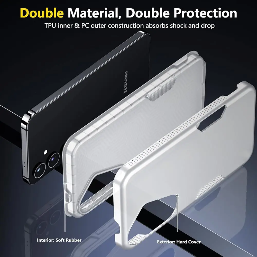 The SPIDERCASE for Samsung Galaxy S24 Plus offers heavy-duty shockproof protection while maintaining a sleek matte clear design. Specifically designed to safeguard your device, this case provides robust defense against drops, bumps, and scratches, ensuring your phone stays protected in any situation. The shockproof construction absorbs impacts, while the matte finish provides a smooth, anti-glare surface that resists fingerprints and smudges.