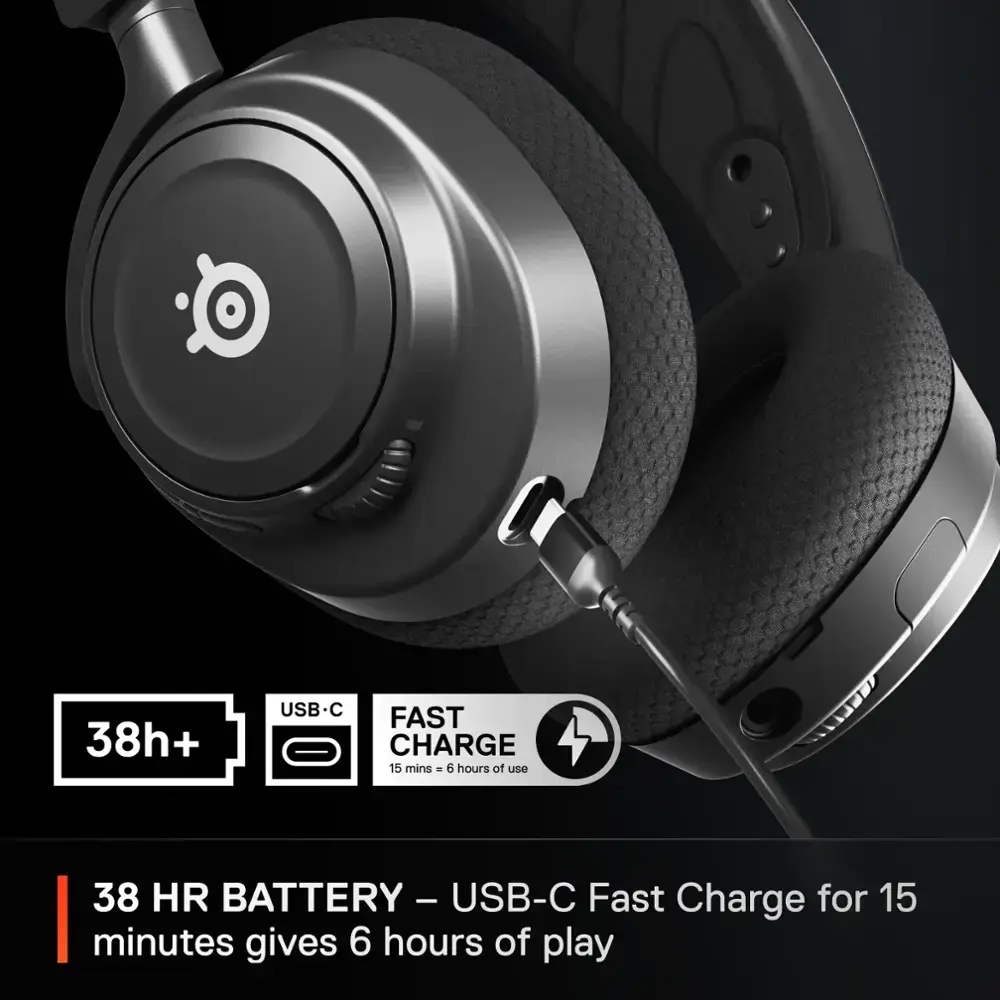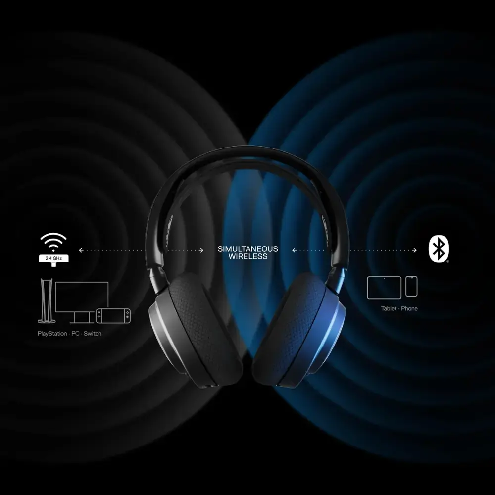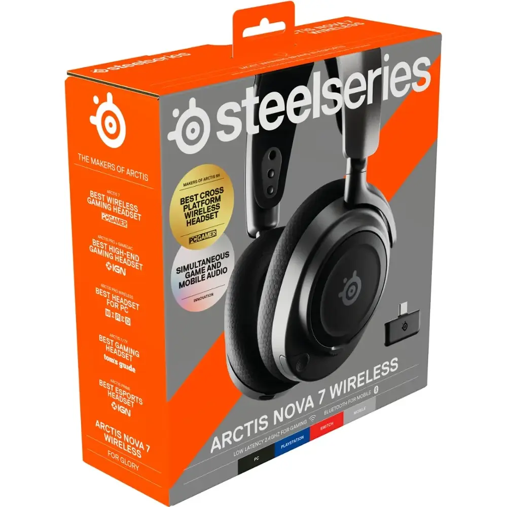 Experience Almighty Audio with the Arctis Nova 7 Wireless Gaming Headphones, a powerful combination of cutting-edge hardware and software. The Nova Acoustic System includes custom audio drivers, 360° Spatial Audio, and a 10-band Parametric EQ powered by Sonar Software. Enjoy the freedom to listen to two audio streams at once with simultaneous 2.4GHz and Bluetooth connectivity, allowing you to easily switch between PC, Mac, PlayStation, and Switch via a convenient USB-C dongle.