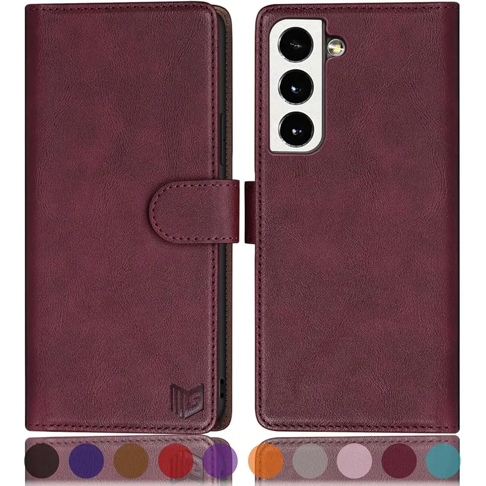 SUANPOT for Samsung Galaxy S22 with RFID Blocking Leather Wallet case - Wine Red
