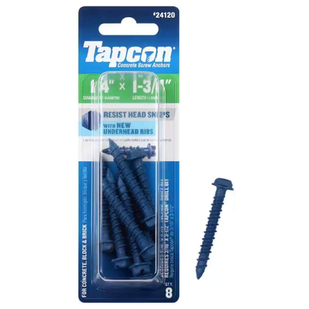 Tapcon 1/4 in. x 1-3/4 in. Hex-Washer-Head Concrete Anchors (8-Pack)