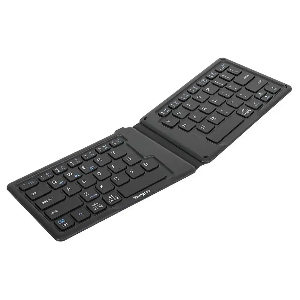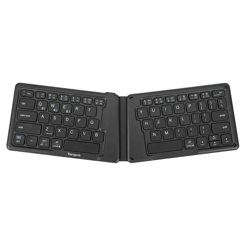Enhance your typing experience with the Targus Ergonomic Foldable Bluetooth Antimicrobial Keyboard in Black. Designed for comfort, its Ergonomic Split Design promotes a more natural hand position, reducing strain during extended use. The Foldable and Compact build makes it easy to take on the go, perfect for travel or remote work. With Bluetooth Connectivity, you can wirelessly pair it with your laptop, tablet, or smartphone. It features Antimicrobial Protection, helping to prevent the growth of bacteria on the keyboard surface. Powered by a Rechargeable Battery, it offers long-lasting performance, and its Universal Compatibility ensures seamless use with Windows, macOS, iOS, and Android devices