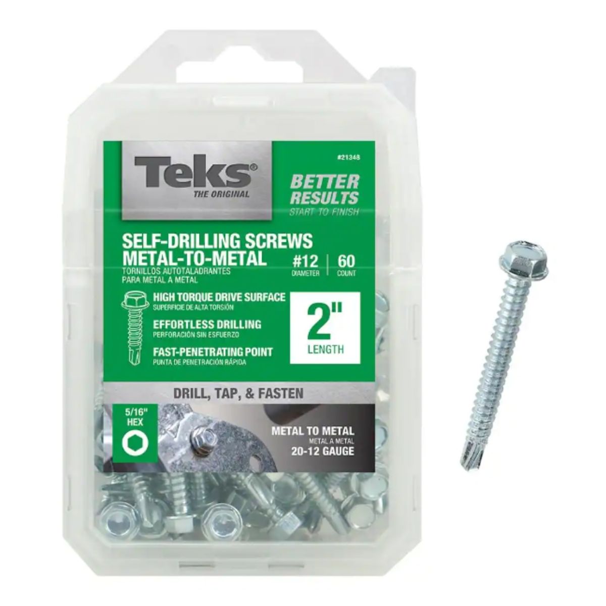 The 60-Pack of Zinc-Plated Steel Hex-Head Self-Tapping Drill-Point Screws, measuring 2 inches in length and labeled as Teks #12, are specifically designed for various applications such as HVAC, electrical, metal framing, and general metal-to-metal connections. These screws ensure a secure fastening and provide a strong holding power.
