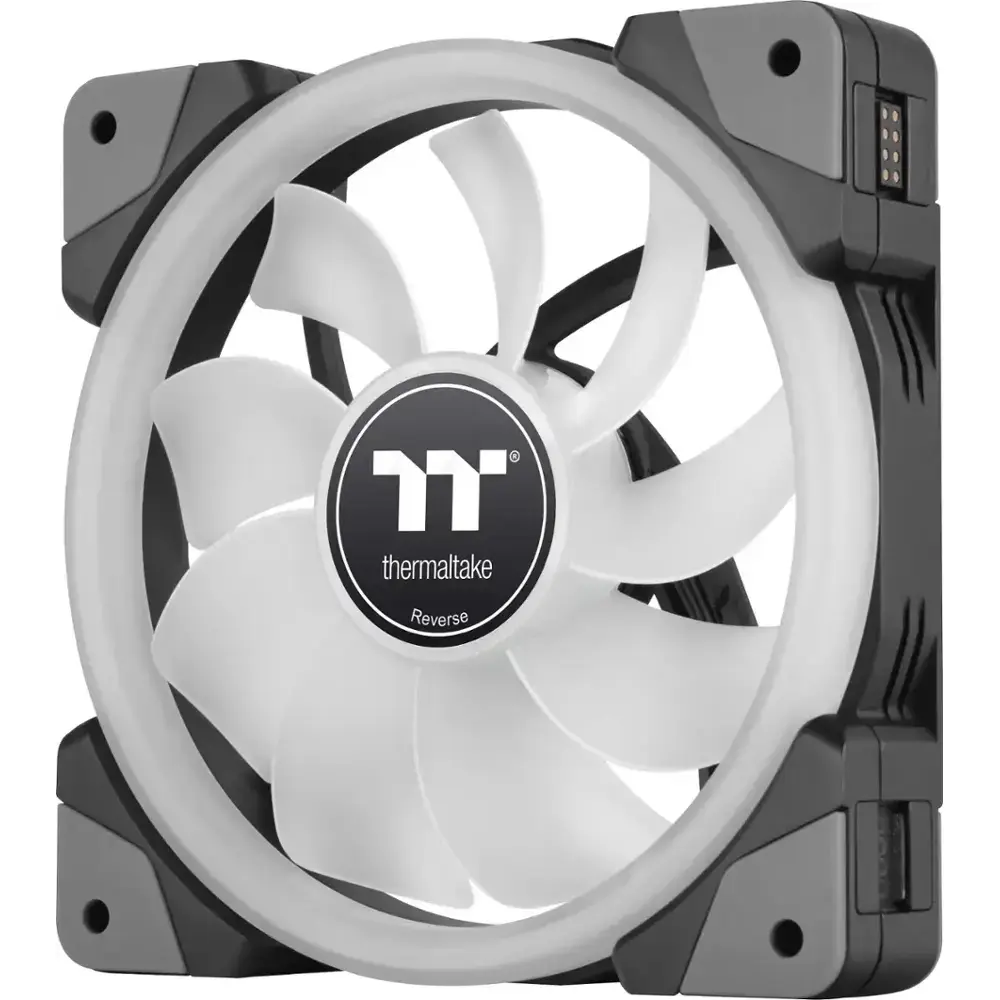 Enhance your RGB cooling with the SWAFAN EX 12 RGB Series. Featuring built-in Neodymium magnets on each fan, these fans are easy to install and reduce cable clutter in your case. The reversible fan blades allow for both push and pull configurations, offering optimized cooling and RGB lighting. With impressive airflow and air pressure, the standard fan blades provide a maximum of 57.11 CFM and 2.39 mmH2O pressure, while the reversed blades offer 56.26 CFM and 2.02 mmH2O pressure. Cleaning is a breeze—just pop out and rinse the fan blades, ensuring thorough drying and reapplying the included lubricant if needed. Enjoy the flexibility of dual-zone RGB control and the ability to sync up to 60 RGB lights at once with the TT RGB PLUS 2.0 software. The SWAFAN EX gives you ultimate control over your cooling and lighting, elevating both performance and aesthetics.