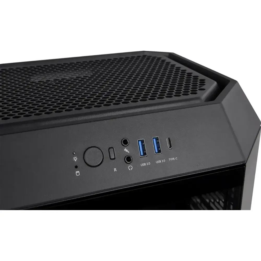 • Tool-Free Panels: Three 3mm tempered glass panels at the front and two perforated panels on the sides, easily removable without tools.