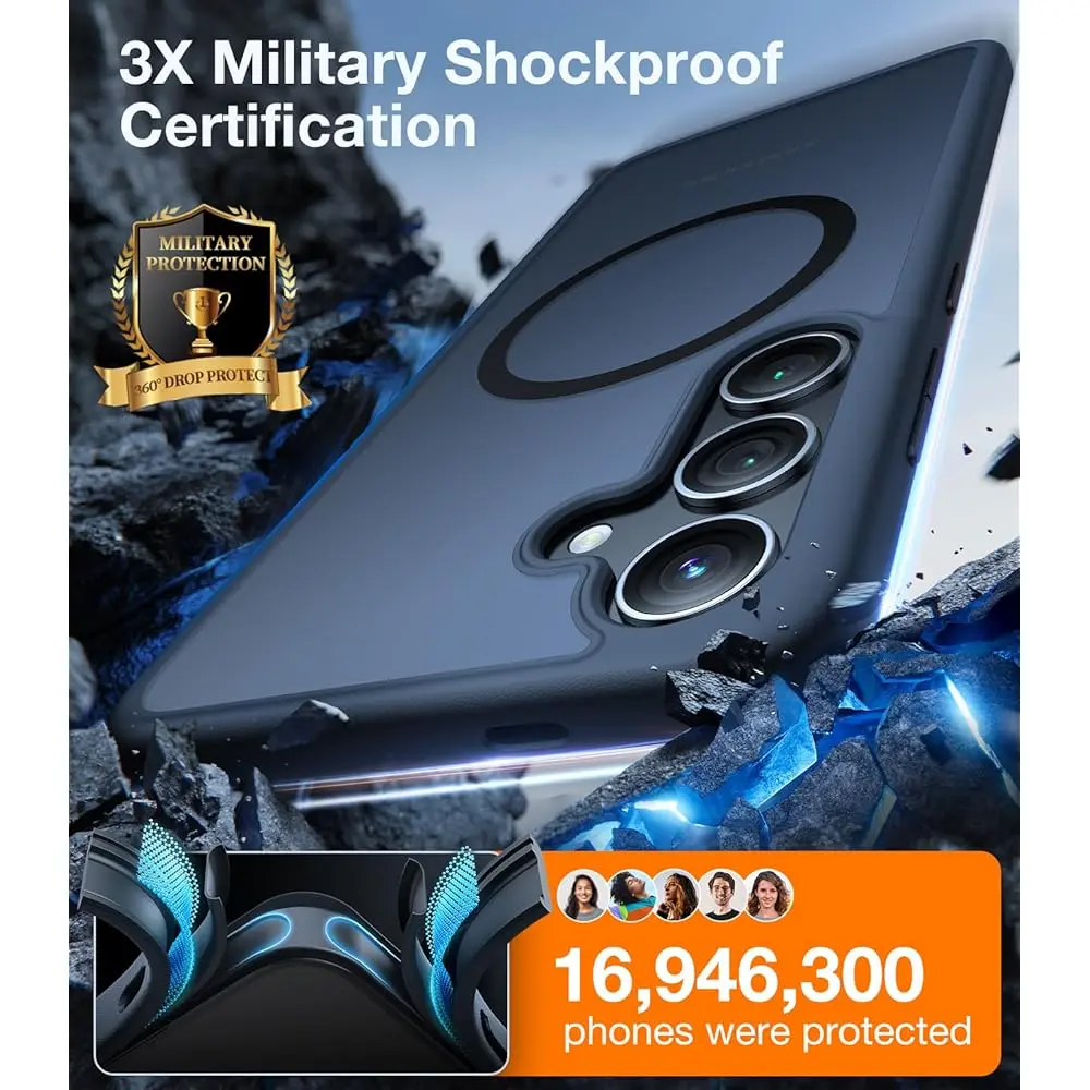Military-Grade 12FT Protection: Exceeds 3X military standards (Certified MIL-STD-810H) with a tough polycarbonate shell and flexible rubber bumper, providing resistance to daily wear and tear. It includes 360° impact-absorbing airbags and 3rd gen X-SHOCK anti-collision angles for superior protection against drops and impacts.