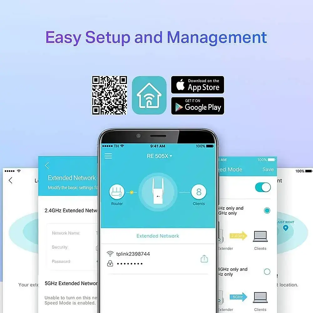 Boost your home network with the TP-Link RE505X Wi-Fi 6 Range Extender and say goodbye to WiFi dead spots and weak signals. Equipped with high-gain antennas, this extender expands your router’s coverage, ensuring faster, smoother, and more reliable connectivity for streaming, gaming, downloading, and more.