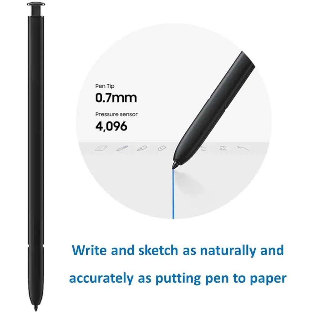 The TYHJ Note 20 Ultra S Pen in Black is the perfect companion for your Galaxy Note 20 and Note 20 Ultra 5G. Designed to offer precise control, this stylus is equipped with Bluetooth connectivity, 4096 pressure levels, and 0.7mm pen tips, making it an ideal tool for both productivity and creative tasks.