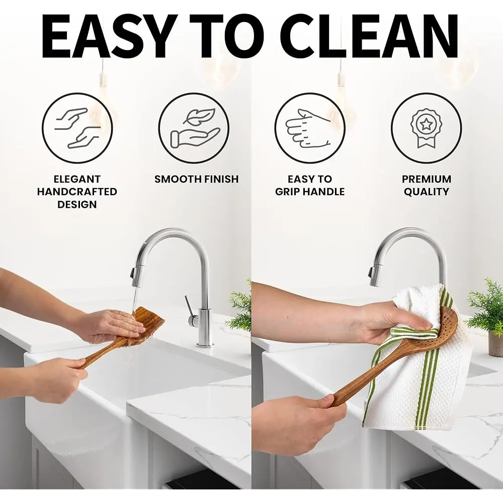 • Superior Quality: Made from durable teak wood, these utensils are built to last.