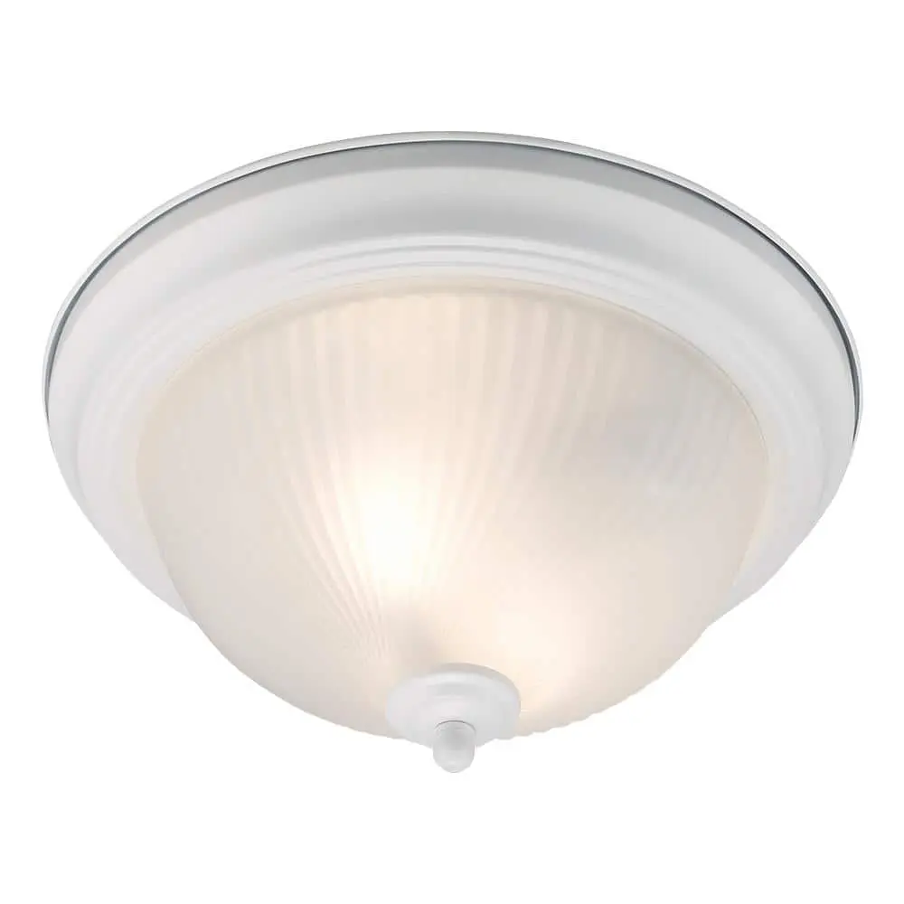 This transitional flush mount light features a sleek white finish and a white frosted glass swirl shade. Its low-profile design makes it ideal for fitting into compact spaces with low ceilings. Perfect for hallways, bedrooms, kitchens, offices, and more, it offers generous lighting with a 2-bulb capacity of up to 60 watts each. Available in a variety of finishes, including black, bronze, brushed nickel, and white, it complements any decor style. Explore the collection for the perfect match to your home’s aesthetic.
