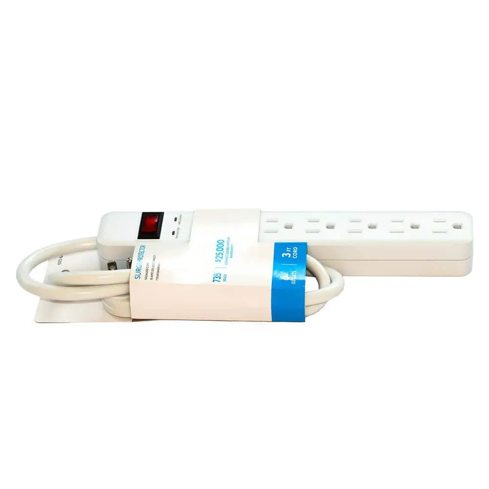 The 6-Outlet Surge Protector delivers reliable protection for a wide range of electronic devices. Featuring six grounded outlets, it allows you to connect and safeguard multiple devices simultaneously, making it ideal for home, office, or other indoor spaces. Built with durable materials, its sleek design ensures it blends seamlessly while staying out of the way.
