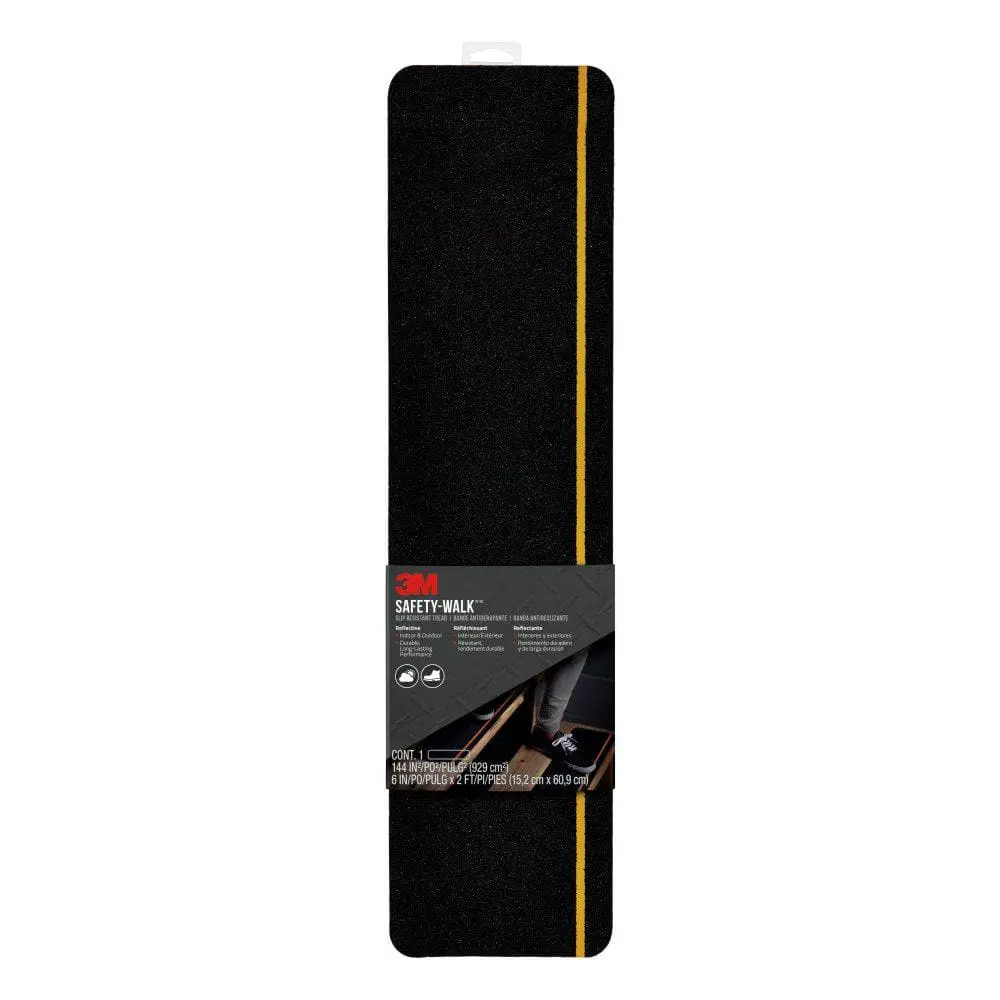 The 3M 6 in. x 2 ft. Safety Walk Slip-Resistant Step and Reflective Tread is designed to offer slip-resistant traction, ensuring safety on steps and walkways. Its reflective surface enhances visibility, making it perfect for use in low-light conditions. Built to withstand heavy foot traffic and harsh weather, it provides durable performance both indoors and outdoors. The self-adhesive backing makes installation quick and easy, and the 6 in. x 2 ft. size fits most steps and walkways. This product is an ideal choice for enhancing safety in high-traffic areas