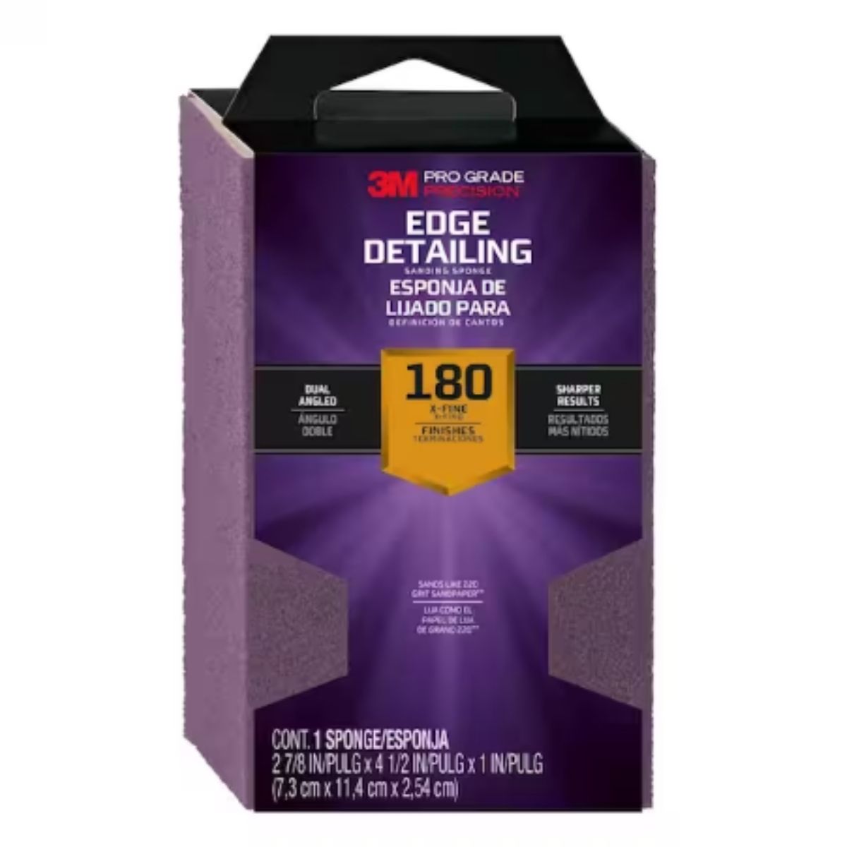 3M - Pro Grade Precision 2-7/8 in. x 4-1/2 in. x 1 in. 180-Grit X-Fine Dual Angle Edge Detailing Sanding Sponge